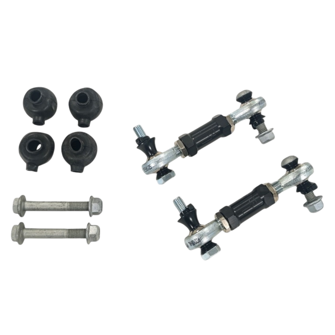 Wenn Sie Ihr Fahrzeug auf der Rennstrecke bis ans Limit bringen, ist eine präzise Kraftübertragung zwischen den Rädern entscheidend für optimales Handling und Leistung. Werksseitige Stabilisatoranlenkungen bestehen oft aus Kunststoffkomponenten, die sich unter Belastung verbiegen können, was zu einer verzögerten und ungenaueren Kraftübertragung führt. Unser Stabilisator-Anlenkungssatz für die Hinterachse ist mit einer robusten Metall-Metall-Uniball-Verbindung ausgestattet, die eine schnelle und präzise Kraftübertragung gewährleistet. Je steifer die Anlenkung, desto schneller und präziser werden die Kräfte übertragen, wodurch die Fahrwerksgeometrie auch bei aggressiver Kurvenfahrt erhalten bleibt.