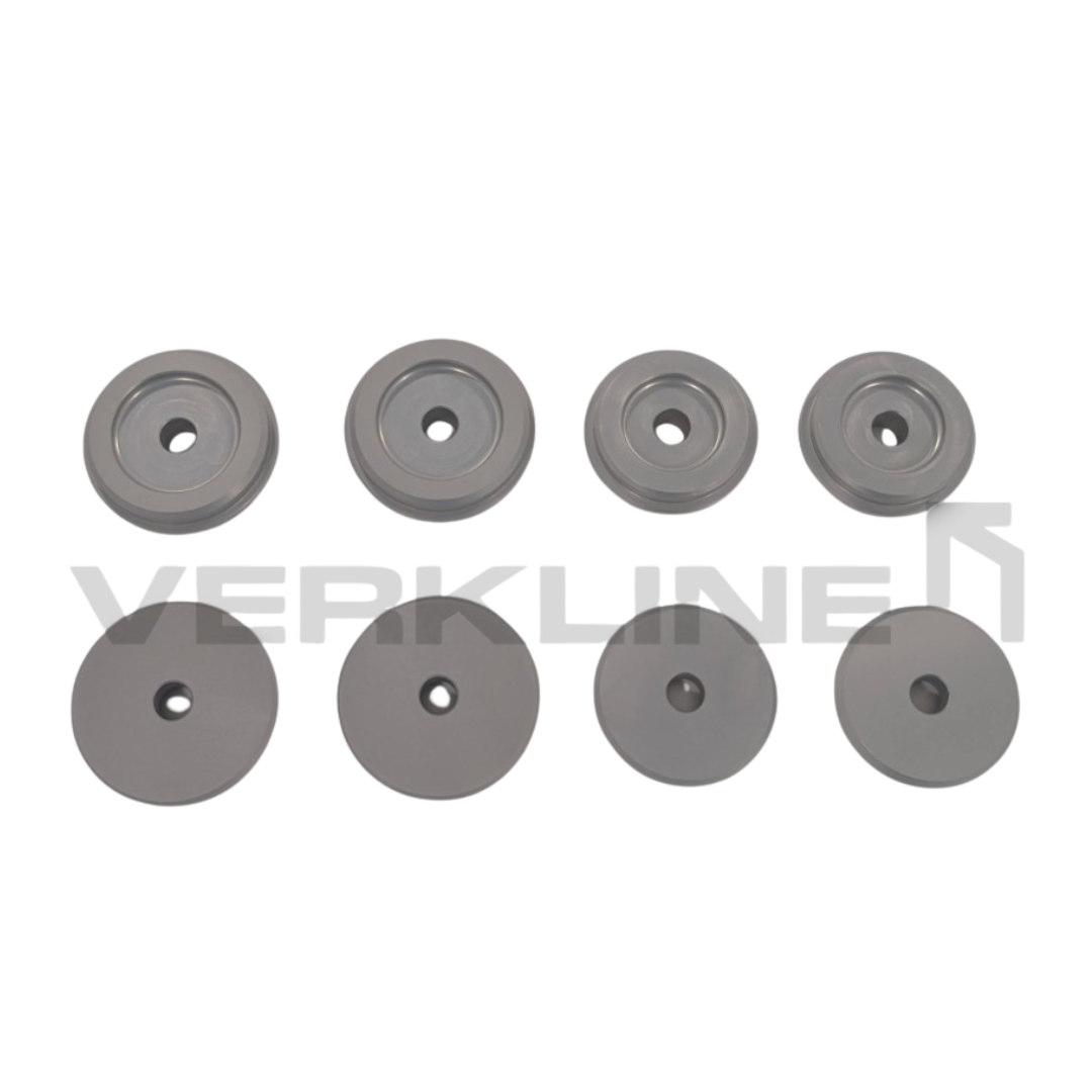 Hinweis: Die Buchsen werden auf CNC-Maschinen mit sehr hoher Toleranz (0,10 mm) präzise gefertigt. Die Audi-Hilfsrahmen sind jedoch im Laufe der Jahre schlaff geworden und haben ihre Form und Größe verloren. Daher müssen die Originalbuchsen sorgfältig entfernt und ggf. nachgeschliffen werden.