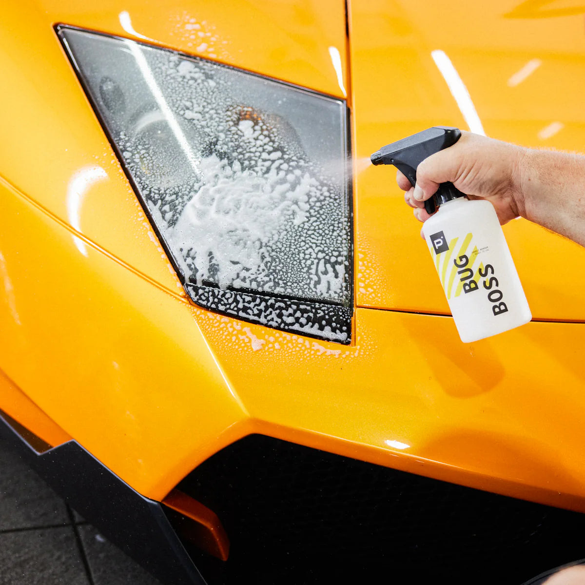 Mit dem BUG BOSS kannst du jede lackierte Oberfläche, Glas, Kunststoff und Metall in den Griff bekommen. Er befreit deine Lieblingsfahrzeuge von hartnäckigen Insektenrückständen, ohne dabei die Oberfläche anzugreifen. Auch deine keramisch versiegelten oder wachsbeschichteten Schmuckstücke können bedenkenlos behandelt werden.