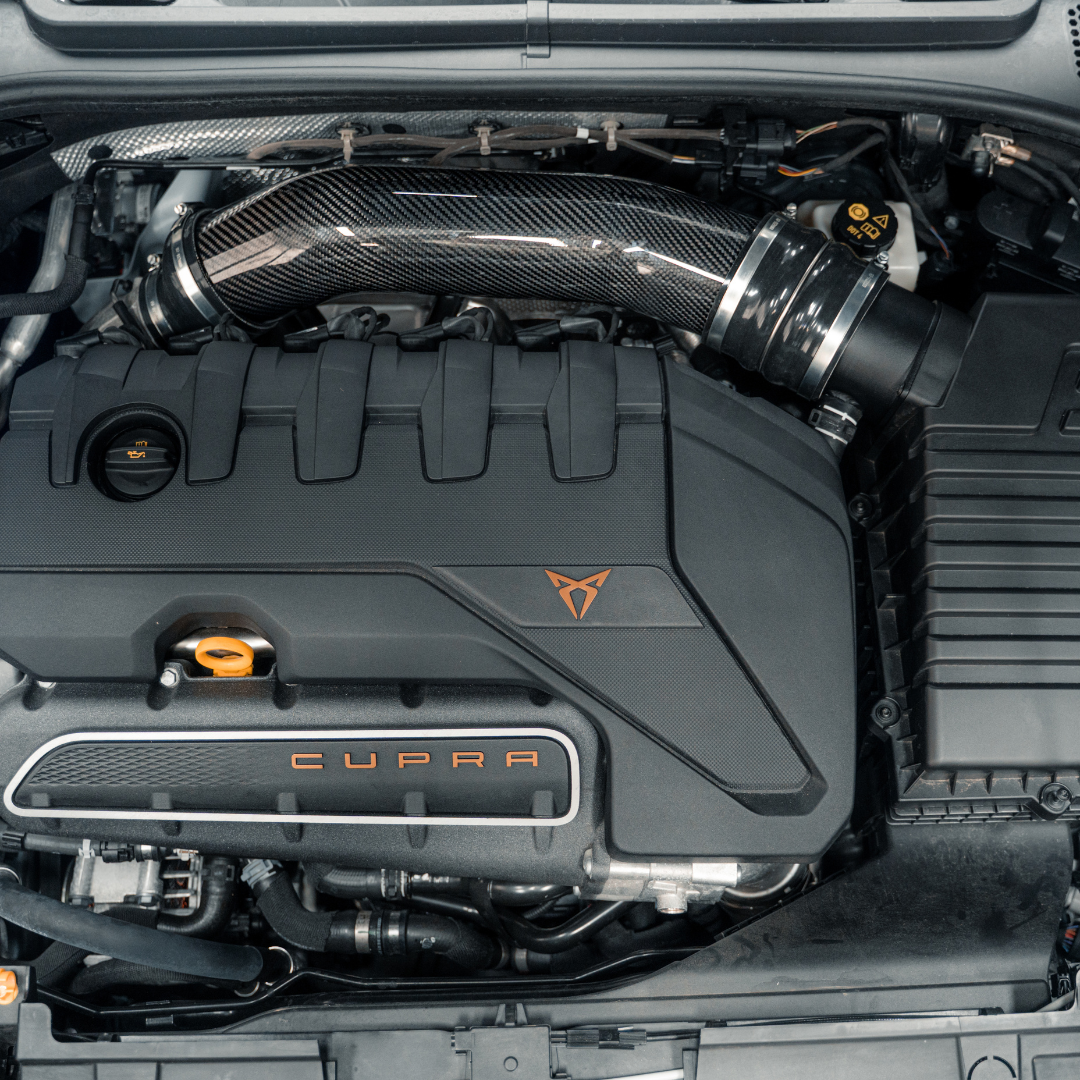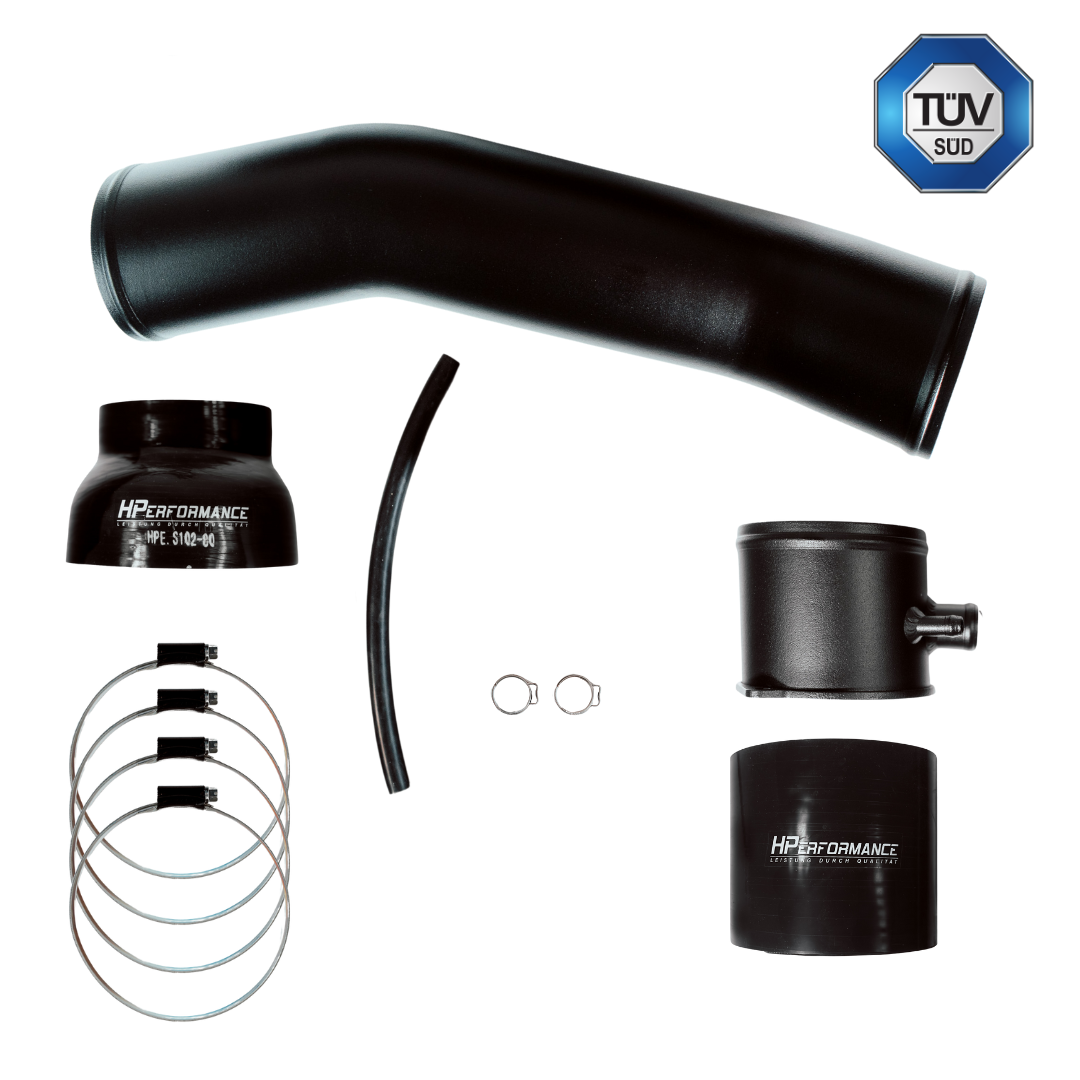Die geschlossene HPerformance 4" 100mm Ansaugsystem ist endlich da. Es kann zusammen mit der originalen Air-Box gefahren werden. Diese Variante kann direkt auf das originale Turboinlet Mehr Ansaugluft ohne laute Ansauggeräusche wie bei einer offenen Ansaugung. Unser OEM+ Ansaugsystem steigert die sichtbare Leistung gegenüber dem Serienansaugsystem und sollte in jedem Fahrzeug mit mehr als 490PS verwendet werden. Das Carbon Rohr haben wir an den Enden mit Aluminium verstärkt, um ein Brechen beim Anziehen der Schellen zu verhindern. Lackiert ist das ganze mit einem Hitzebeständigen Speziallack.
