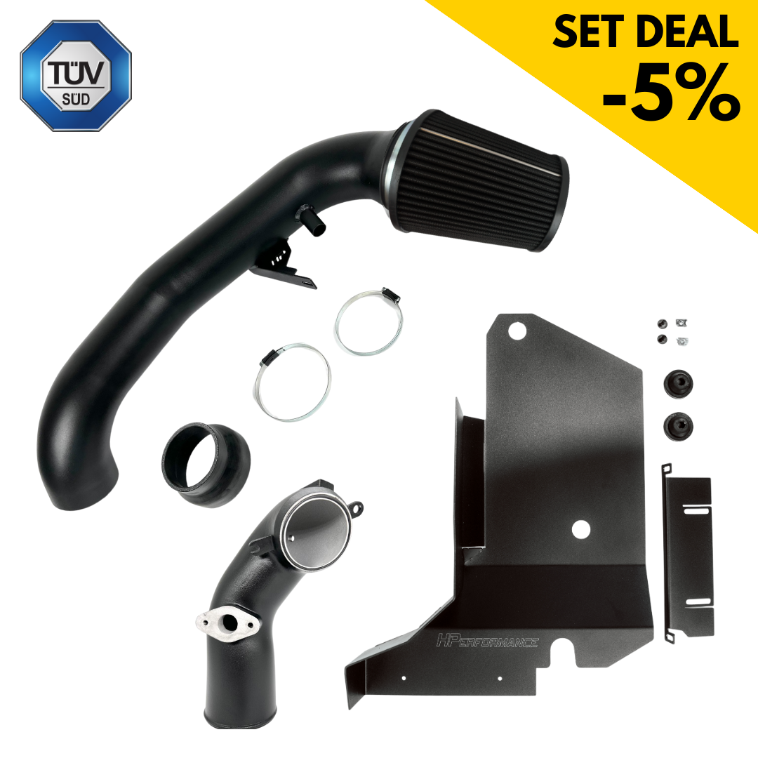 Das HPerformance 100mm 4" Ansaugsystem ist eines der größten Ansaugsysteme auf dem Markt. Es verfügt über einen 100 mm Rohrdurchmesser, der mit einem Silikonreduzierer an das Turboinlet selbst angepasst wird. Das 100mm 4 Zoll Ansaugsystem steigert die sichtbare Leistung gegenüber einem 90mm 3,5 Zoll Ansaugsystem und sollte in jedem Fahrzeug mit mehr als 500 PS/600NM verwendet werden. Das System verfügt über eine gut gestaltete Halterung, um jegliche Berührung im Motorraum zu verhindern. Durch die Verwendung von Aluminium hat es einen guten Wärmeaustausch und ist sehr leicht. Es hat keine negativen Nebenwirkungen/Risikoeffekte wie Kohlenstoffsysteme in Bezug auf Schmelzen, Ausbleichen/Bleichen und Verformung. Darüberhinaus hat Aluminium sehr gute Wärmeaustauschfunktionen, sodass ein heißes Ansaugrohr nach abgestelltem Motor extrem schnell wieder kalt wird. Es speichert keine Wärme.