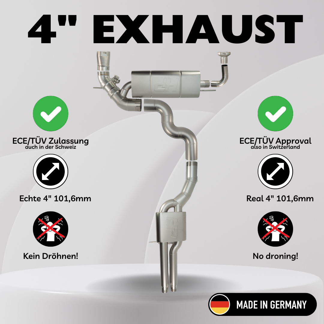 • 1 x 4 Zoll / 101,6mm Abgasanlage ab Katalysator mit ECE Zulassung