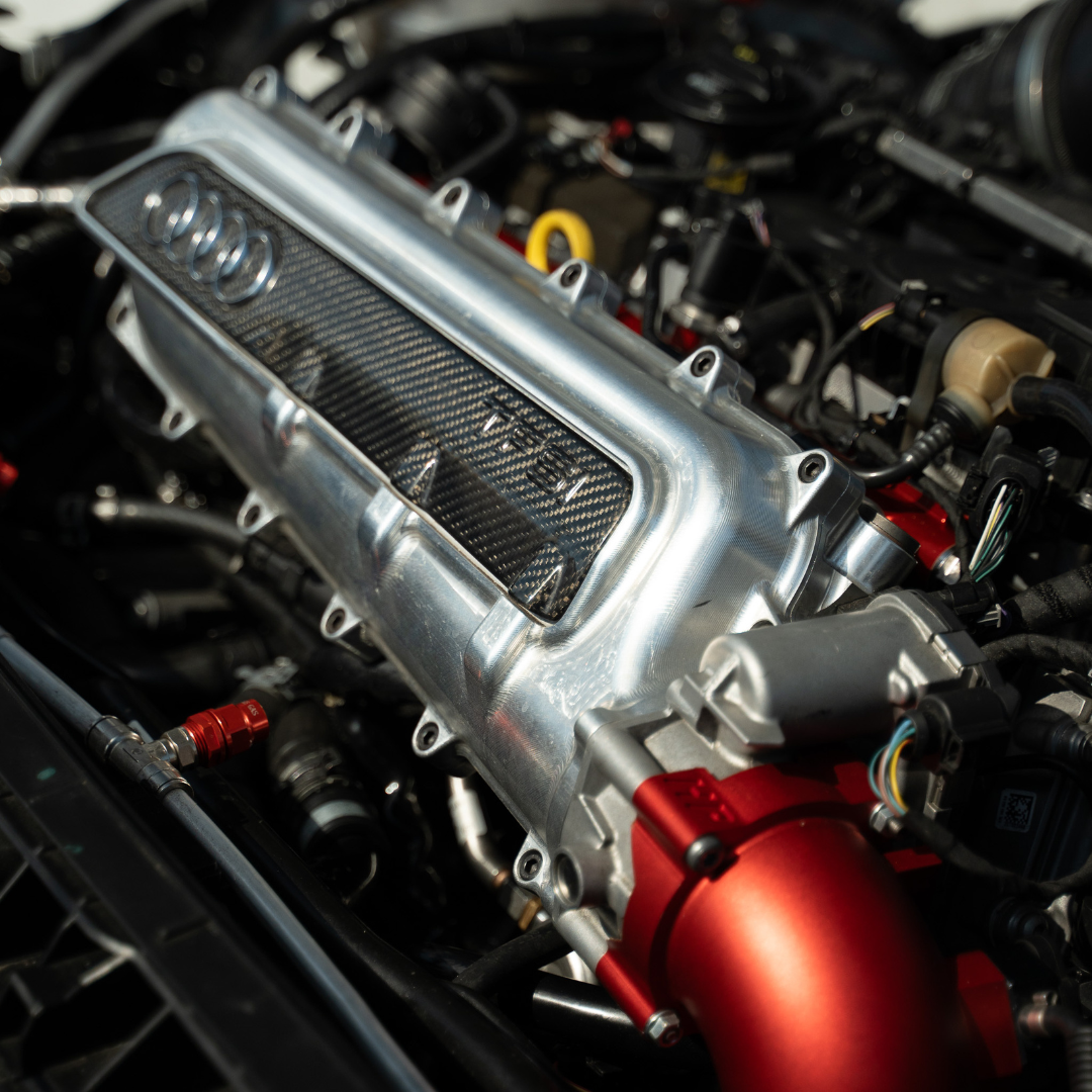 Unser gefrästes Kammersaugrohr für den 2.5 TFSI ersetzt das serienmäßige Spaltsaugrohr. Spaltsaugrohre sind bis zu einer bestimmten Leistung bzw. Ladedruck sehr effizient, da alle Zylinder gleichmäßig gefüllt werden. In Verbindung mit unserem "Runner Delete" Ansaugrohr Unterteil wird die Effizienz nochmals deutlich verbessert.