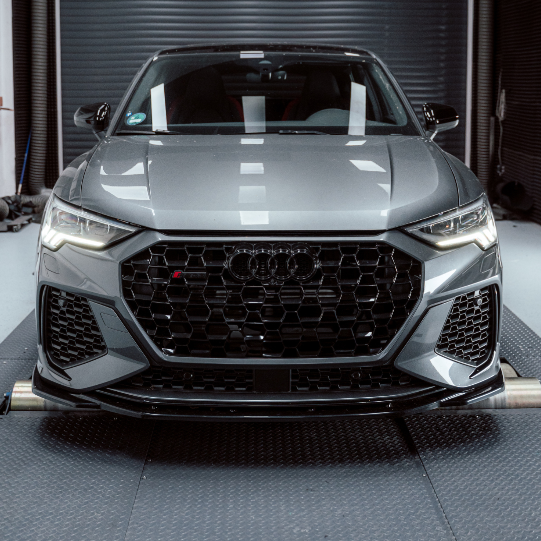 The RS Q3 F3 with gasoline particulate filter (OPF) presented us with a complex technical challenge. The aim was to fully retain the incomparable emotion and performance of the predecessor model without OPF despite the stricter emissions regulations. Through innovative approaches in the exhaust system, precise software tuning and the targeted use of high-quality materials, we were able to achieve an optimum balance between performance, sound and environmental regulations. Our expertise in the field of exhaust construction and performance enhancement was decisive in this. All components - from the exhaust system and turbocharger to the control software - are manufactured and tested in-house in Germany. This complete control guarantees the highest quality, maximum stability and precise tuning that remains consistent even under extreme conditions. With the RS Q3 F3, we combine uncompromising performance with a genuine motorsport feel - made in Germany.