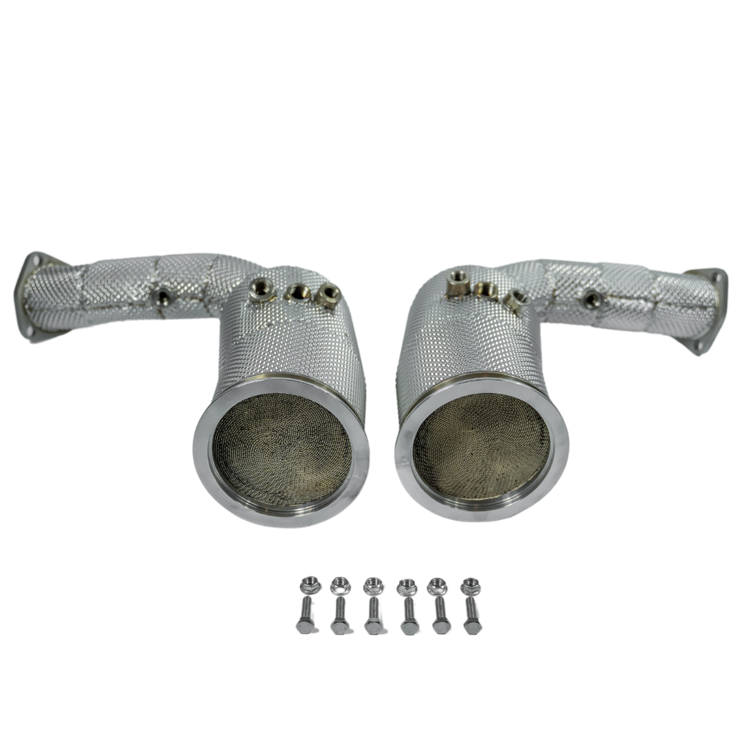 Downpipes with 200 Zeller Sport Kats, specially developed for the powerful Audi 4.0L TFSI engines in the RSQ8.