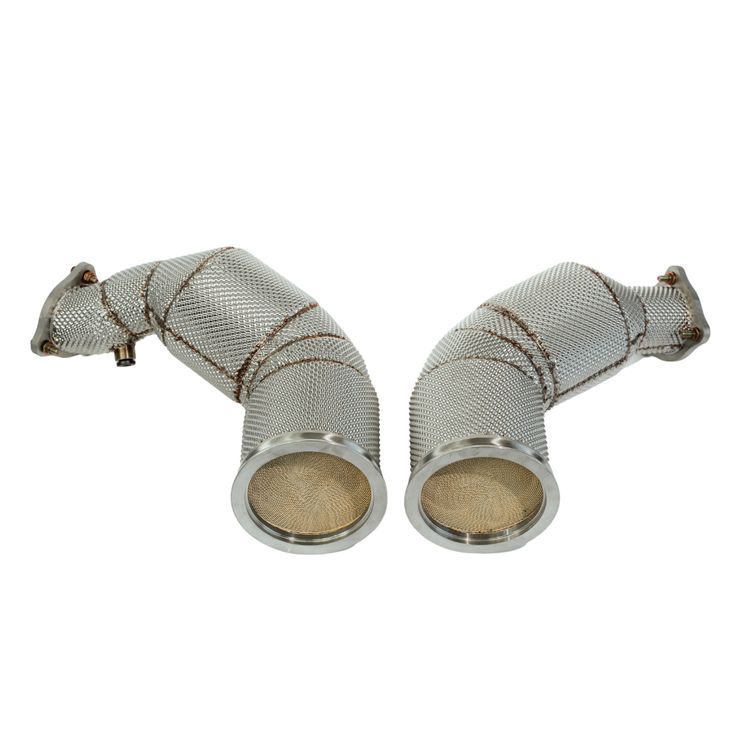 Thanks to the original flanges and connections, the downpipes fit perfectly to the existing turbos - completely without adjustments. Manufactured from high-quality 304 stainless steel and precision TIG-welded, they guarantee a long service life and optimum performance. Our downpipes are also thermally insulated as standard.