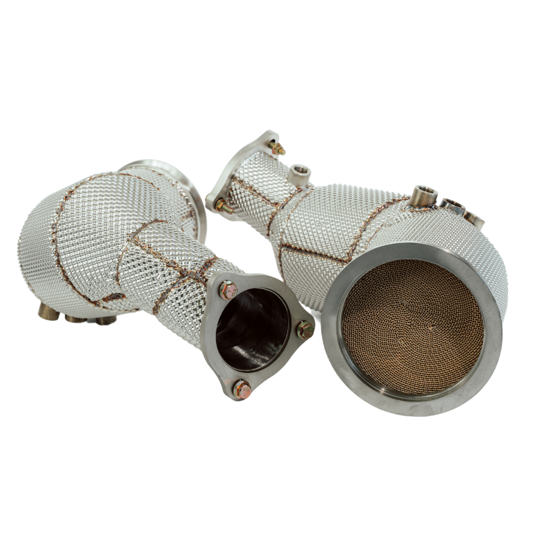 These downpipes provide a noticeable increase in performance and a distinctive sporty sound. By dispensing with the original OPF, the exhaust back pressure is drastically reduced, resulting in thermal relief for the turbo, lower exhaust temperatures and improved response.