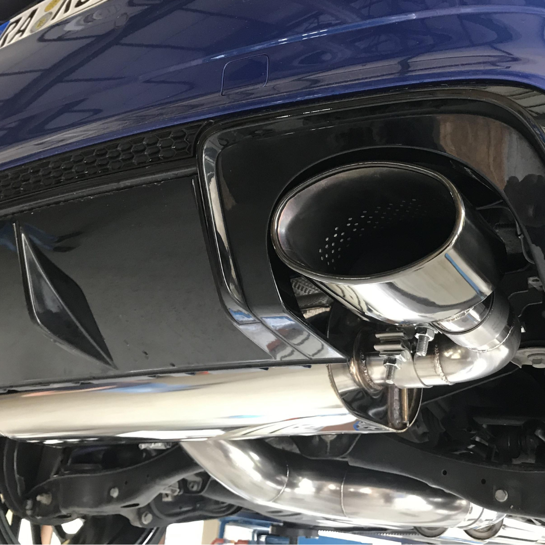The 3.5" 90mm exhaust system is designed for outputs of around 900 hp and also offers a great sound without any negative drone effects in the car. The system is supplied with a 2.75" 70mm diameter twin pipe, which then transitions to 3.5" 90mm. At its narrowest / smallest point, the exhaust system offers a diameter of 3.5" 90mm, which allows it to handle 900 horsepower. This is a plug and play replacement to the original system using the original exhaust flap module. Therefore, the system can be controlled via the standard AUDI MMI / Dashboad switches (Dynamic / Comfort / Individual / Auto). The exhaust system can be configured with or without a center silencer. If you select the "street" option, the exhaust system has a central silencer and the system is approved for road traffic. The version without center silencer "race" version sounds more brutal, but no longer has homologation.