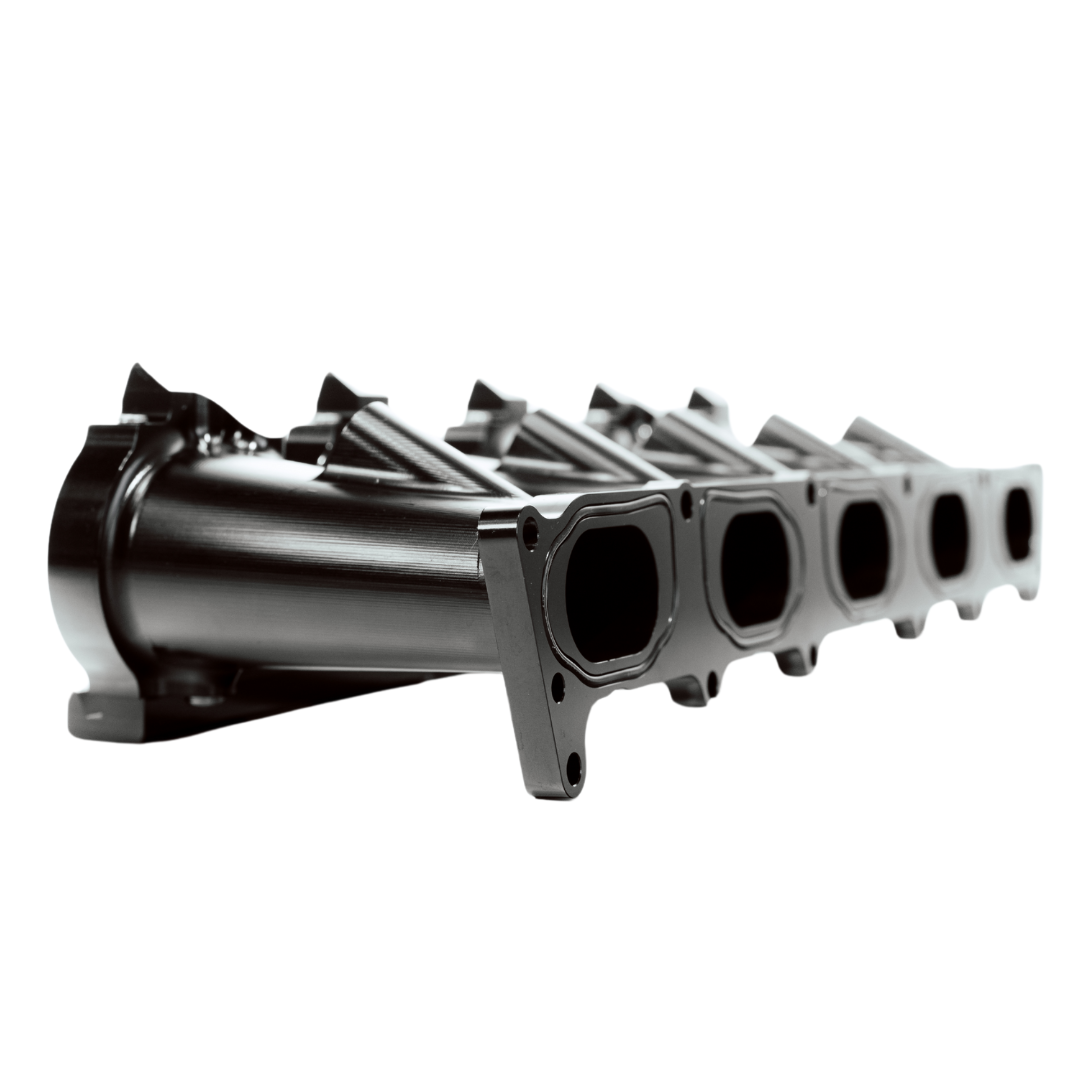Our milled chamber intake manifold for the 2.5 TFSI replaces the standard split intake manifold. Split intake manifolds are very efficient up to a certain power or boost pressure, as all cylinders are filled evenly. In conjunction with our "Runner Delete" intake manifold lower section, efficiency is significantly improved once again. This is due to the elimination of the swirl flaps: