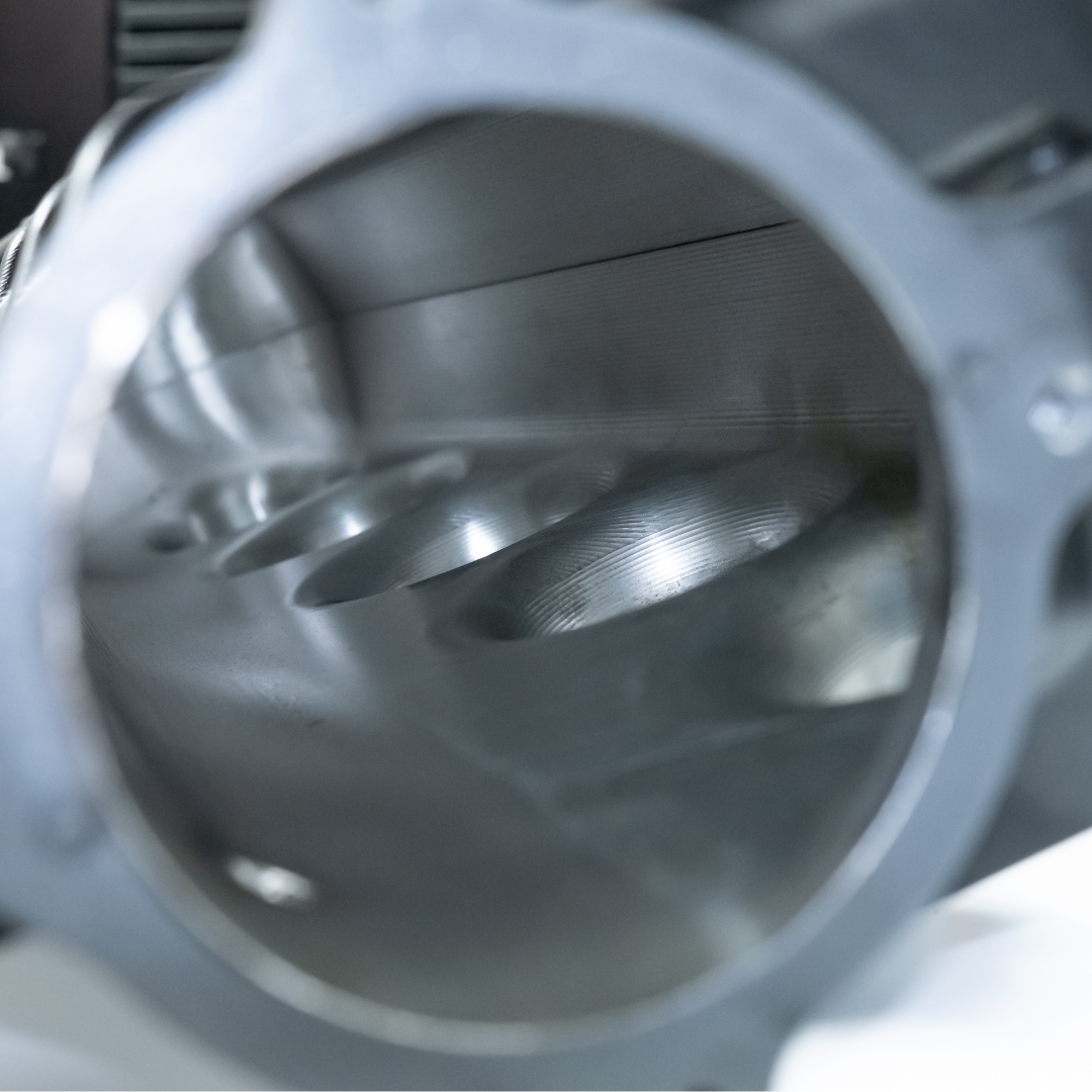 Our milled chamber intake manifold for the 2.5 TFSI replaces the standard split intake manifold. Split intake manifolds are very efficient up to a certain power or boost pressure, as all cylinders are filled evenly. In conjunction with our "Runner Delete" intake manifold lower section, efficiency is significantly improved even further.