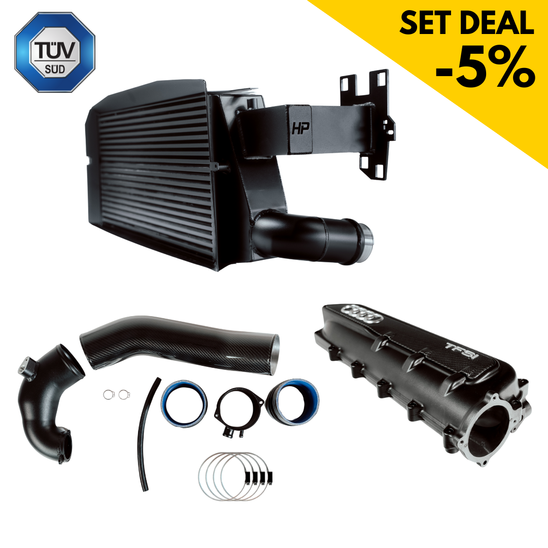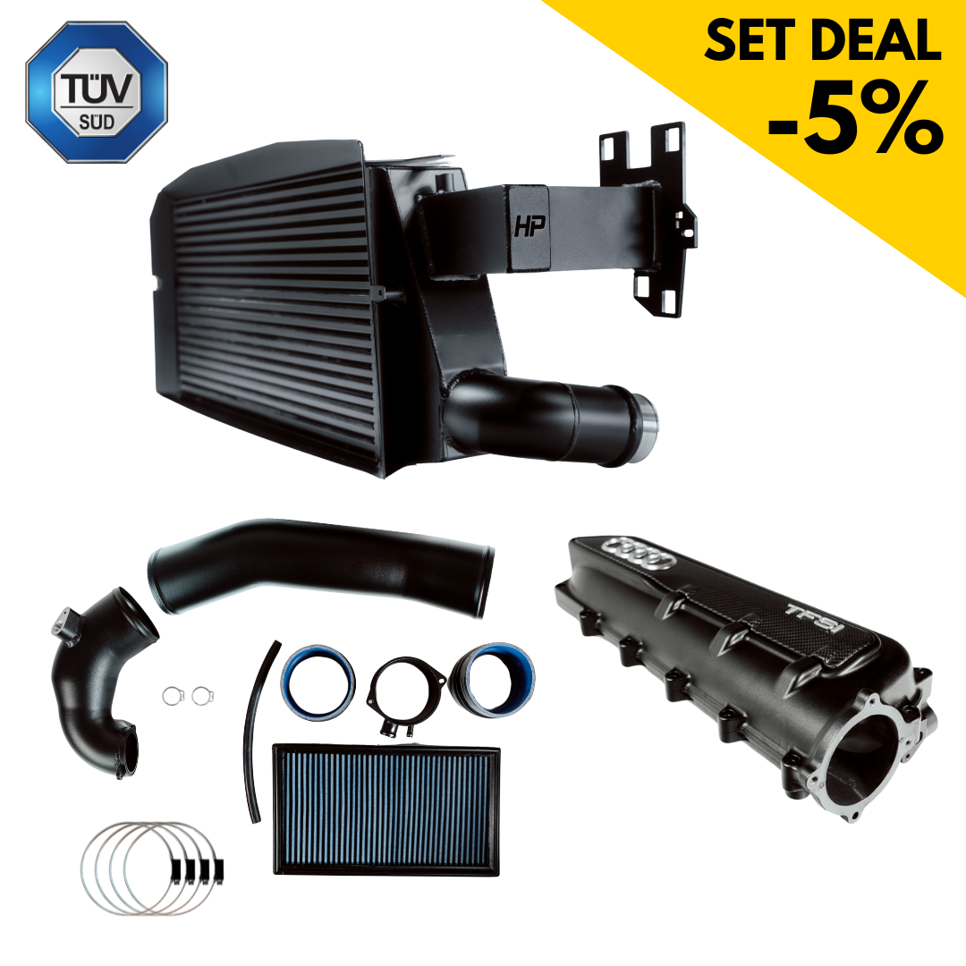 If you want to exploit the full potential of your Audi RS3 8Y, there is no way around an optimized intercooler, a powerful intake and a flow-optimized intake manifold. The combination of the HPerformance Sport series intercooler, the closed 4-inch intake and the milled chamber intake manifold ensures maximum air flow, lower intake temperatures and a measurable increase in performance - perfect for performance-enhanced vehicles from 490 hp!