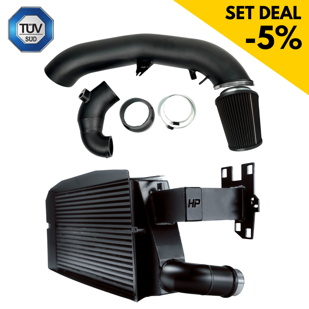 - Optimal choice of materials & easy installation: The lightweight aluminum design of the intake prevents heat build-up and ensures rapid temperature equalization. The intercooler can be fitted plug & play, without cutting or major adjustments.