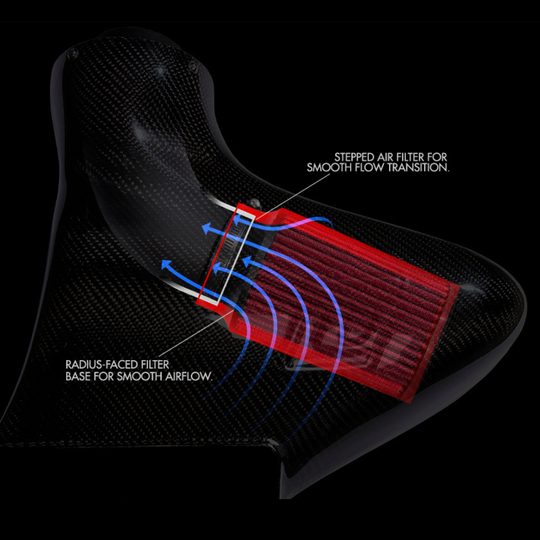Das Ergebnis ist ein komplettes Kaltluftansaugsystem, das garantiert maximale Leistung bringt und für mehr Leistung, höhere Luftgeschwindigkeit und eine bessere Gasannahme sorgt, während gleichzeitig die Ansauglufttemperaturen und das Turboloch verringert werden. Der Carbon-Luftkanal von Unitronic trägt ebenfalls zur Leistungssteigerung und zur Verbesserung des Luftstroms bei, indem er beide im OEM-Kühlergrill vorhandenen Lufteinlässe nutzt.