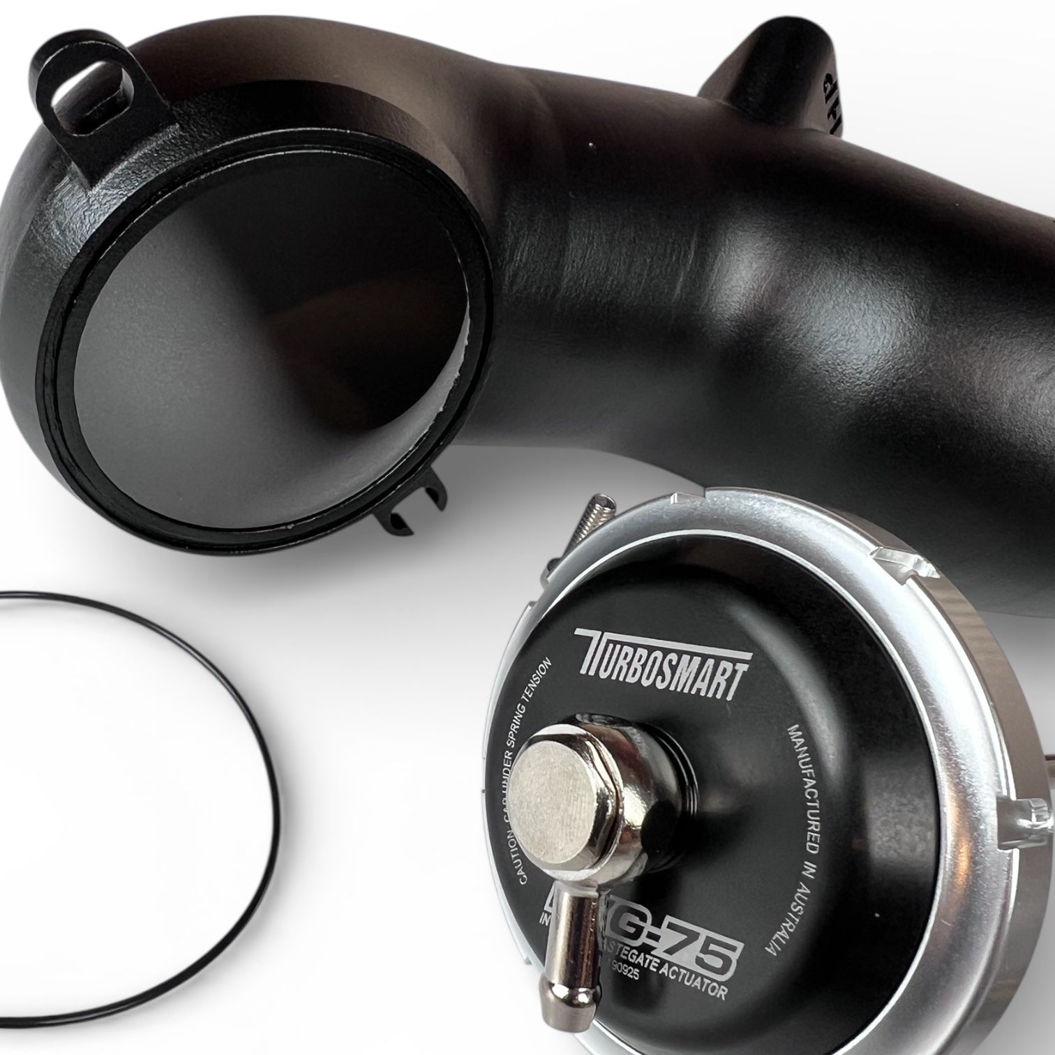 Zum Lieferumfang gehören stahlummantelte und verpresste Öl- und Wasserleitungen zur sicheren Versorgung des Turboladers, die erforderliche abgasseitige Dichtung sowie ein strömungsoptimiertes, 3D-gedrucktes Turboinlet für maximale Passgenauigkeit. Ergänzt wird das Kit durch eine High-End Turbosmart Wastegatedose, die eine präzise und stabile Ladedrucksteuerung ermöglicht.