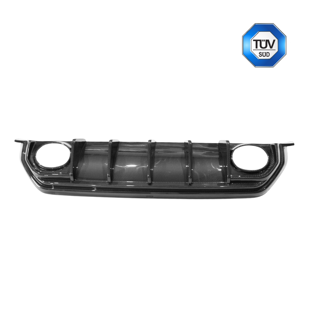 This high-quality dry carbon diffuser for the Audi RS3 8Y impresses with its high-quality workmanship and flawless surface structure. Made from genuine carbon (dry carbon), it not only offers a sporty, aggressive look, but also the highest precision in fit and finish.