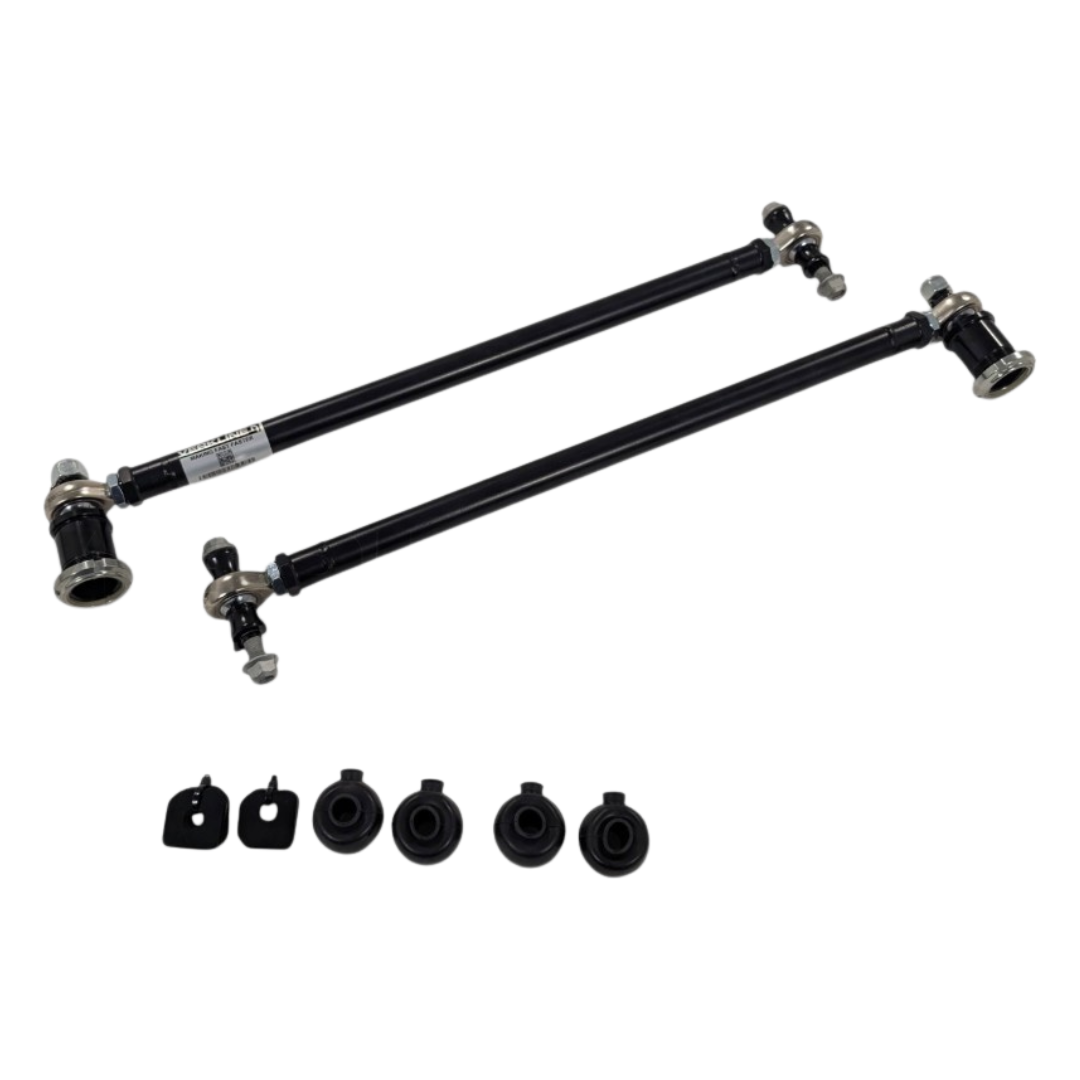 • M16 Uniballs aus geschmiedetem Stahl, glatt und hochglanzvernickelt (nicht in China hergestellt, dieselben, die wir für unsere Rallye-Lancer-Evo-Fahrwerke verwenden; diese machen 80 % der Produktkosten aus)