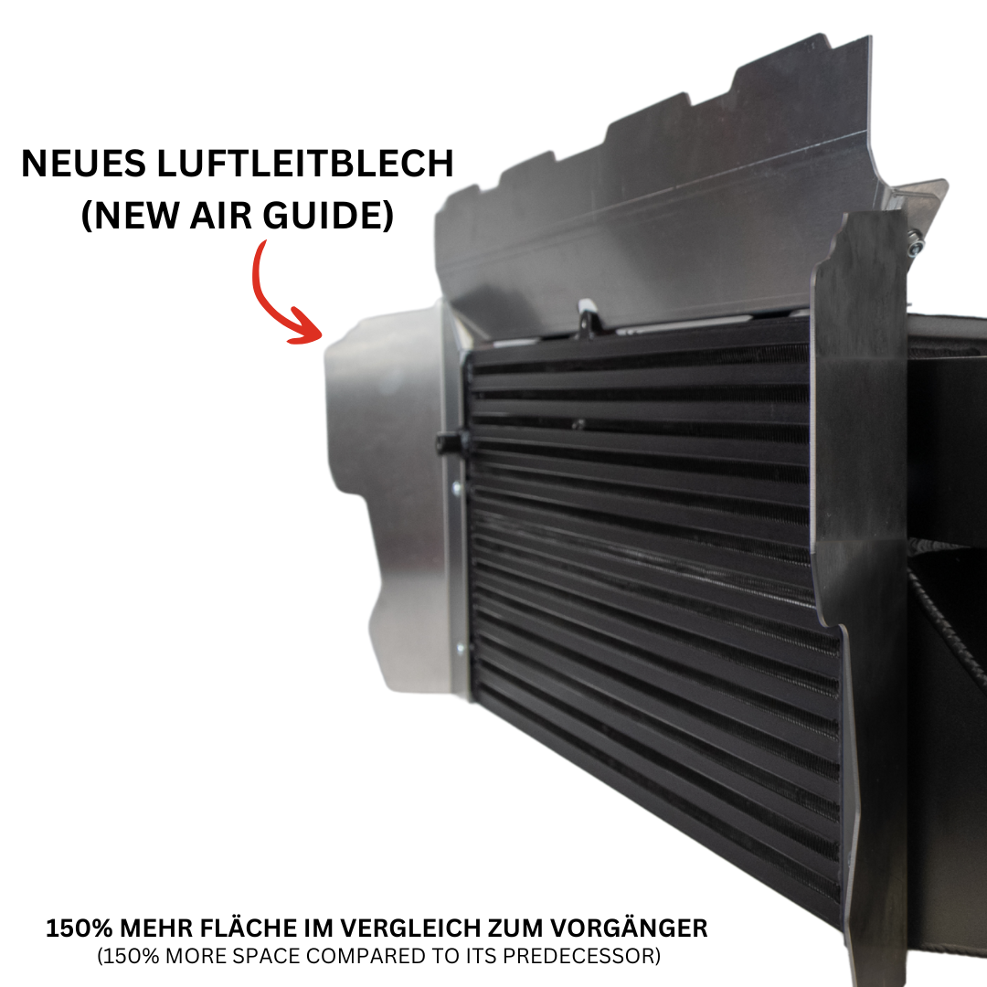 The Sport series intercooler offers 124 % more charge air volume and 88 % larger air intake area than the standard intercooler. This significantly reduces the intake temperature, which enables stable and efficient power delivery - even during multiple test bench runs or hard work on the racetrack. -