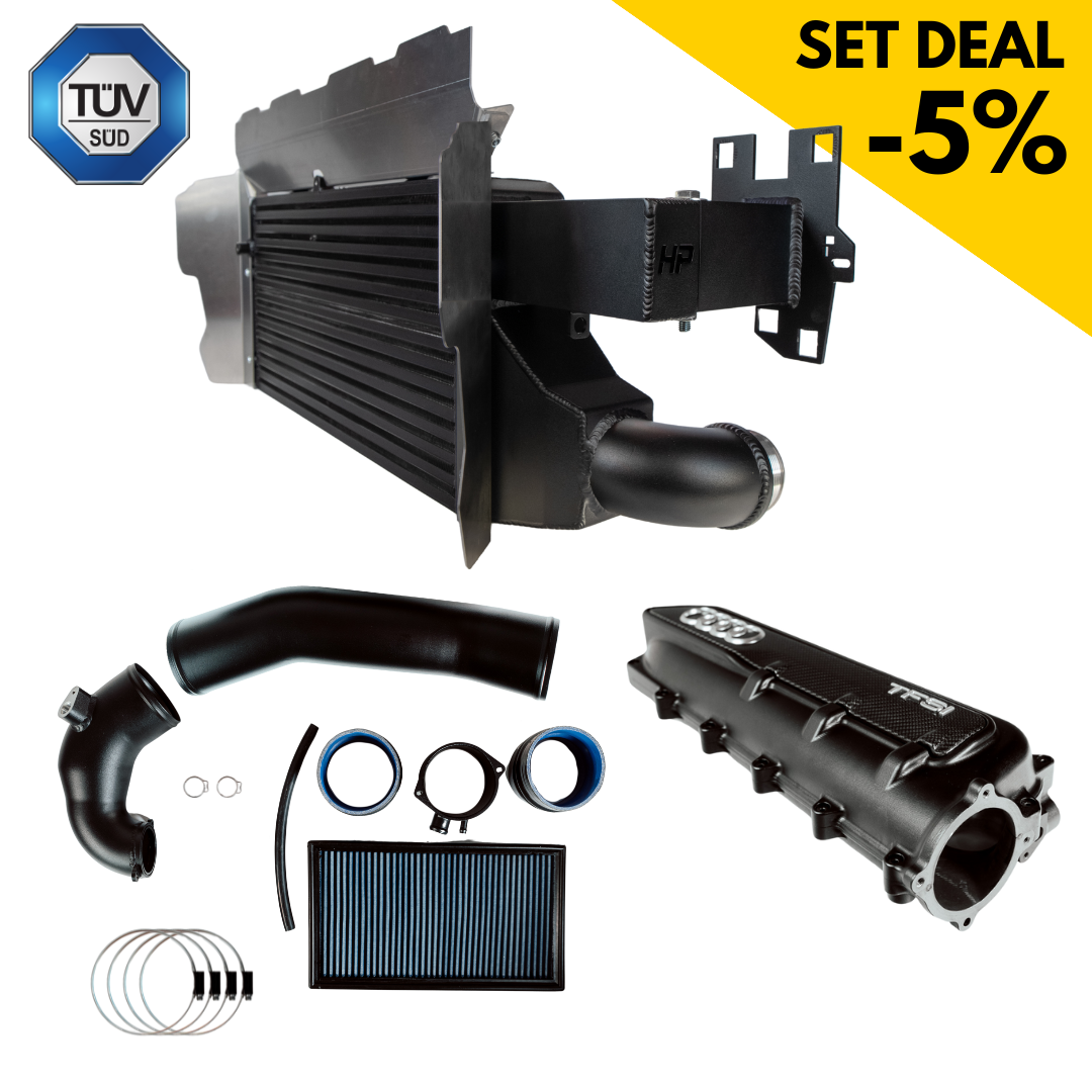 If you want to exploit the full potential of your Audi RS3 8Y, there is no way around an optimized intercooler, a powerful intake and a flow-optimized intake manifold. The combination of the HPerformance Sport series intercooler, the closed 4-inch intake and the milled chamber intake manifold ensures maximum air flow, lower intake temperatures and a measurable increase in performance - perfect for performance-enhanced vehicles from 490 hp!