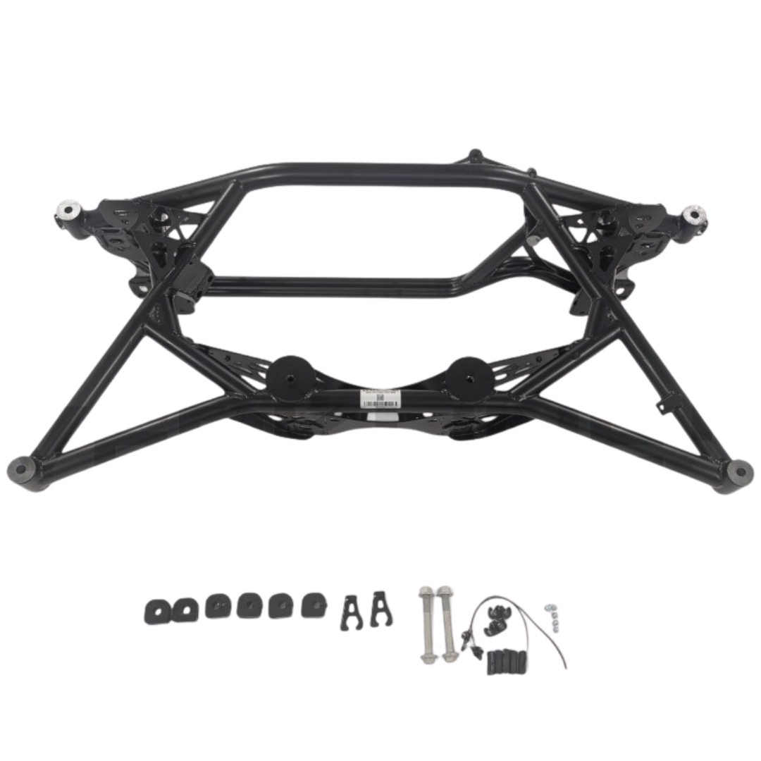 En utilisant les mêmes tubes T45 que ceux utilisés dans les voitures WRC, nos cadres auxiliaires offrent une rigidité accrue, une réduction de poids et une maniabilité plus précise. Toutes les pièces d'usine peuvent être vissées sur cette unité, aucune autre modification n'est nécessaire.