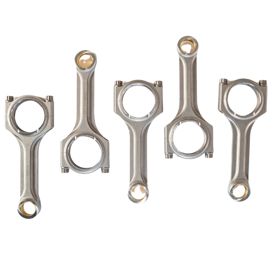 Les bielles HPerformance à tige en X sont conçues pour être utilisées avec des pistons de série. Elles ont un degré de dureté de 41 (HRC) et un design "trapézoïdal" pour pouvoir utiliser des pistons de série. Nos bielles sont soumises à un contrôle individuel à 100%. Grâce à la longueur modifiée, le taux de compression est réduit à 9,7:1 et convient donc parfaitement à la combinaison avec des pistons de série et des puissances allant jusqu'à 800 CV sur des carburants routiers.