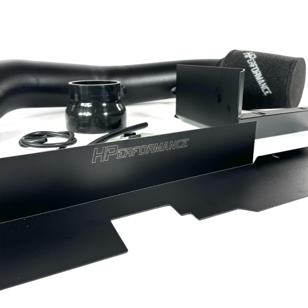 Le HPerformance ouvert 5" 125mm est l'un des plus grands systèmes d'admission du marché. Il est accompagné d'une entrée turbo surdimensionnée de 100mm 4", qui s'adapte au tuyau d'admission lui-même à l'aide d'un réducteur en silicone. Le système d'admission de 125mm 5 pouces augmente la puissance visible par rapport à un système d'admission de 100mm 4 pouces et devrait être utilisé dans tout véhicule de plus de 650 chevaux. Le système est doté d'un support bien conçu pour éviter tout contact dans le compartiment moteur. Grâce à l'utilisation d'aluminium, il a un bon échange thermique et est très léger. Il n'a pas d'effets secondaires/de risques négatifs tels que les systèmes au carbone en termes de fusion, de décoloration/blanchiment ou de déformation. En outre, l'aluminium a de très bonnes fonctions d'échange thermique, de sorte qu'un tuyau d'admission chaud redevient froid extrêmement rapidement après l'arrêt du moteur. Il n'emmagasine pas la chaleur.