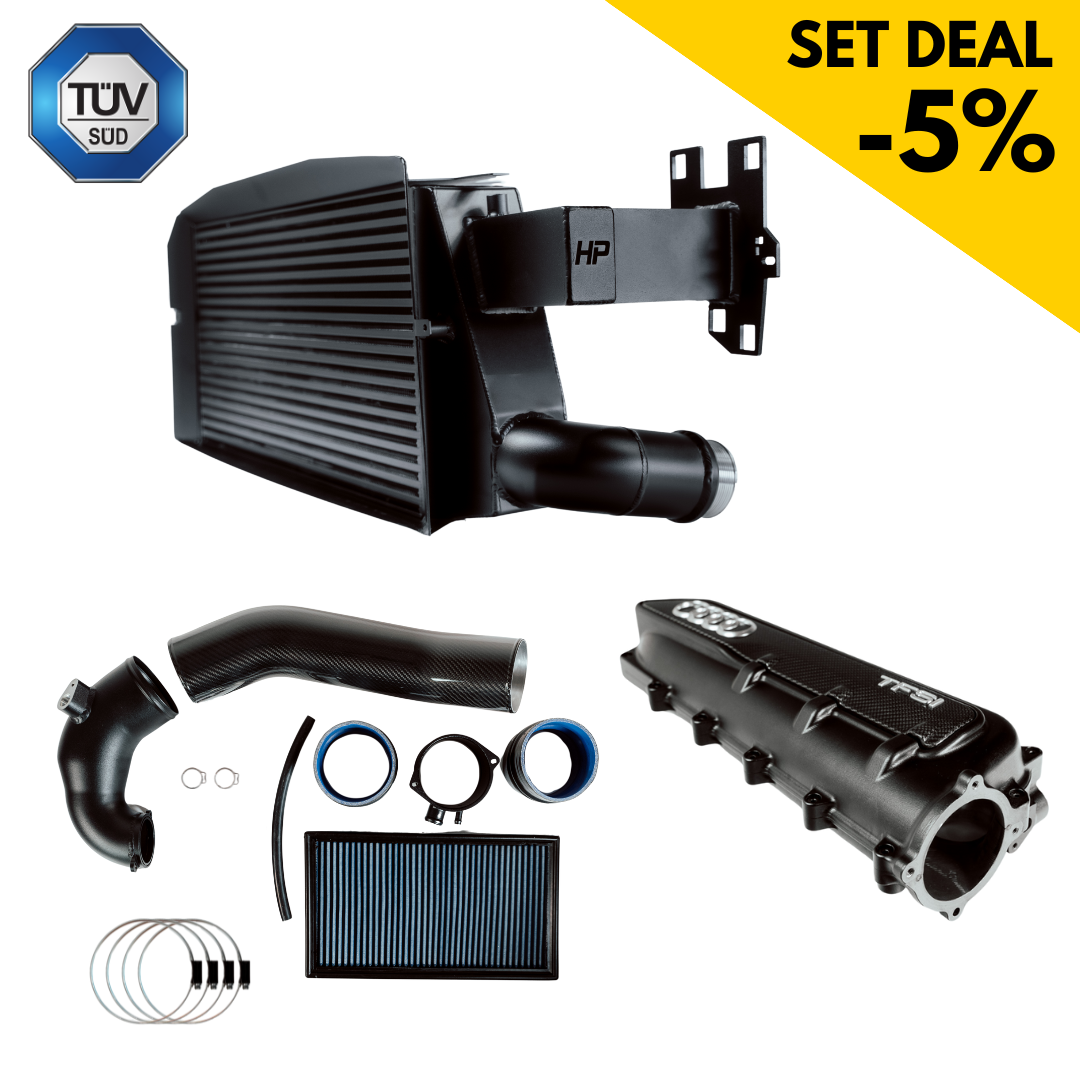Si l'on veut exploiter tout le potentiel de son Audi RS3 8Y, on ne peut pas faire l'impasse sur un refroidisseur d'air de suralimentation optimisé, une aspiration performante et un pont d'admission à flux optimisé. La combinaison du refroidisseur d'air de suralimentation HPerformance Sport Series, de l'aspiration fermée de 4 pouces et du pont d'aspiration à chambre fraisée assure un débit d'air maximal, des températures d'aspiration plus basses et une augmentation mesurable de la puissance - parfait pour les véhicules aux performances accrues à partir de 490 ch !