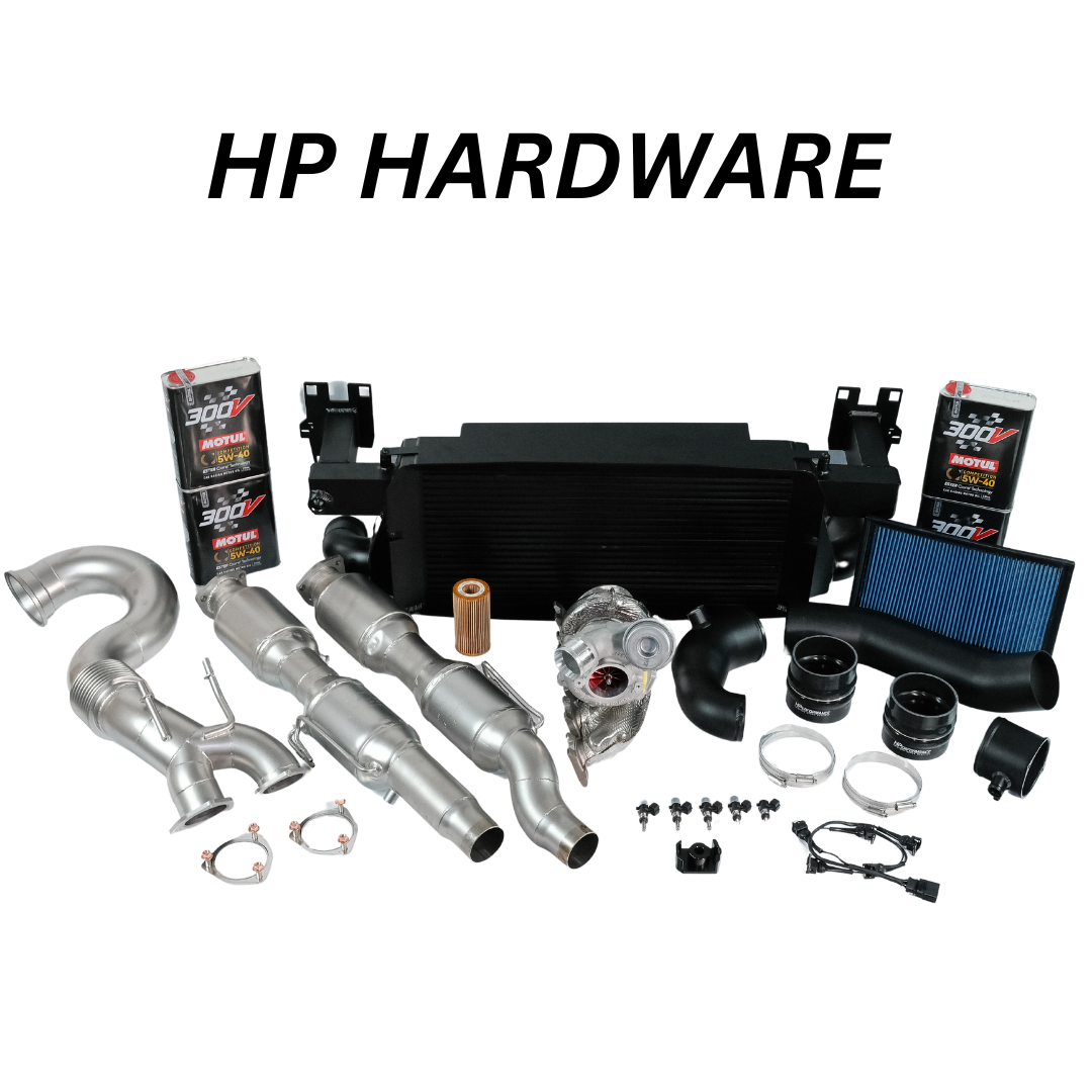 IMPORTANT : HPerformance ne procède pas à l'installation, au réglage individuel du logiciel ni à l'enregistrement auprès du TÜV. Ce kit représente uniquement le matériel nécessaire pour le niveau de puissance correspondant. Les frais de port pour l'envoi du turbocompresseur (si l'envoi d'un nouveau turbocompresseur n'est pas choisi) sont à la charge de l'acheteur !