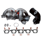 Echangeur d'air frontal (série HP Sport), turbo inlet (min. 90mm), système d'admission (min. 100mm), downpipe (90mm), pompe haute pression 12mm, bougies NGK-R, tuyau de refoulement (min. 65mm), système d'échappement à partir du catalyseur (CEP), blow-off mécanique,