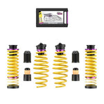 Les ressorts de haute qualité en acier au chrome-silicium utilisés par KW sont adaptés, dans le cas des ressorts filetés KW, en fonction du véhicule, aux amortisseurs de châssis de série et aux charges des roues. Lors du développement de chaque jeu de ressorts, nous tenons compte du fait que les taux de ressort s'harmonisent parfaitement avec les différentes courbes caractéristiques des amortisseurs de votre châssis adaptatif de série. Ainsi, même avec un jeu de ressorts filetés KW, vous découvrez votre voiture de manière plus directe et plus dynamique. Les ressorts filetés KW conviennent aux automobilistes qui souhaitent abaisser discrètement leur véhicule tout en profitant de l'avantage d'une plage de réglage individuelle.