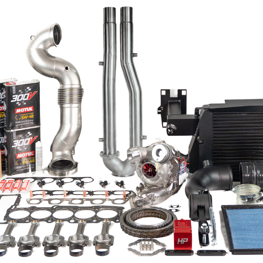 Ce kit matériel fait passer la RS3 8Y à un niveau supérieur : plus de 650 ch sont possibles avec ces composants après un réglage approprié ! La pièce maîtresse est le turbocompresseur TC Turbos X8 Upgrade qui, en combinaison avec des optimisations ciblées de l'air frais, assure une traction maximale jusqu'au limiteur. Des améliorations dans tous les domaines confèrent à la RS3 une sonorité puissante, mais conforme aux exigences du TÜV. Décisif dans ce niveau de puissance : l'Engine Pack 1 - un renforcement ciblé du moteur qui conçoit les pistons, les bielles et d'autres composants internes pour une charge plus élevée et fournit la stabilité nécessaire.