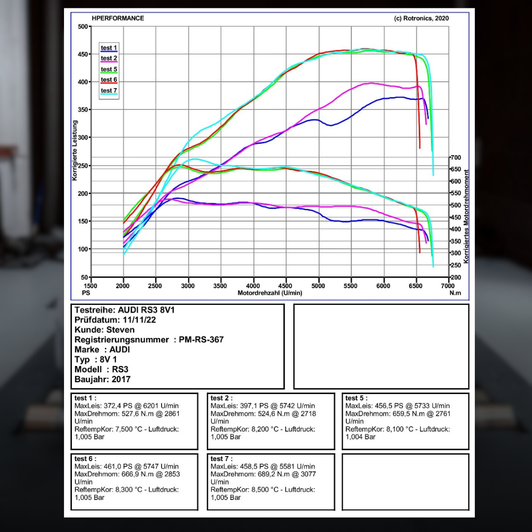 Alle unsere Leistungsstufen werden auf unserem eigenen Leistungsprüfstand und unter real Bedingungen auf der Straße individuell auf Ihr Fahrzeug angepasst