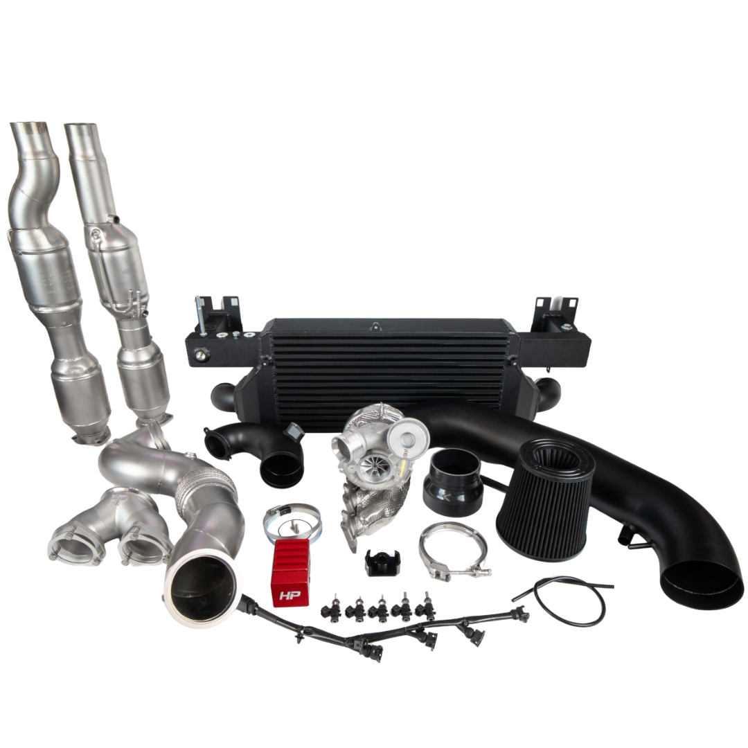 In vielen Jahren Entwicklung reifte dieses Kraftpaket, welches kompromisslos auf Ansprechverhalten und gleichzeitig Leistungen von über 600PS konzipiert wurde. Turboloch oder spätes Ansprechverhalten sind Fremdwörter für Fahrzeuge mit diesem Setup. Die Aggressivität und die Agilität einer Stufe 2 bleibt in dieser Stufe erhalten und wird durch mehr Kraft im mittleren und oberen Drehzahlbereich erweitert. Die Ladeluftkühlung und auch die Abgasführung werden von der Stufe 2 übernommen, da alle unsere Leistungsstufen modular aufbauend sind. Im Hinblick auf Abgastemperatur bzw. Abgasgegendruck und thermische Belastung glänzt auch hier der Turbolader, welcher durch seine effiziente 8 Blatt Abgasturbinengeometrie, egal in welchem Drehzahlbereich, das Abgas regelrecht aus dem Zylinder "saugt".