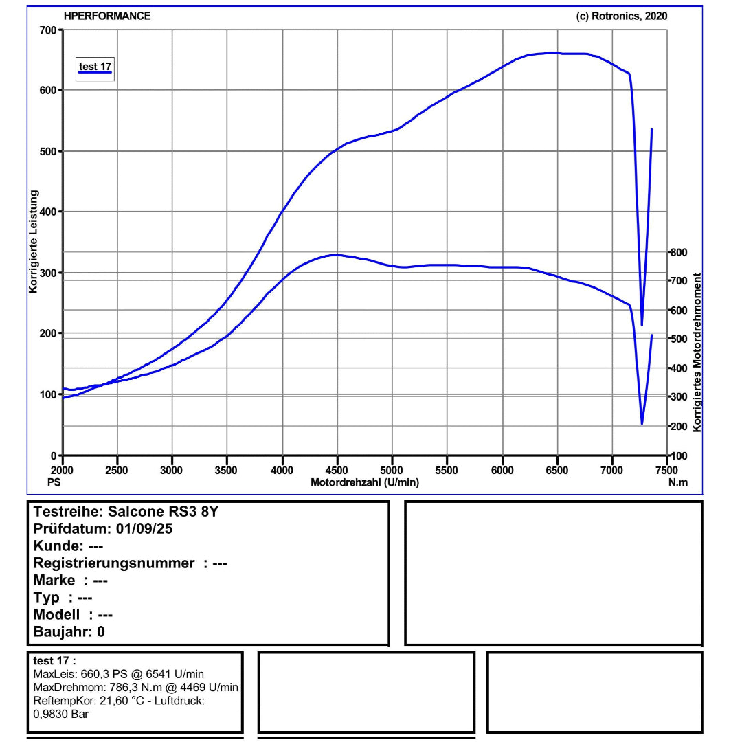 Diese Stufe ist das Ergebnis monatelanger Entwicklungsarbeit – mit Straßenzulassung, Prüfstandserprobung und Detailoptimierung. Für die TÜV Prüfung haben wir außerdem ein Festigkeitsgutachten erstellen lassen, bei dem unser RS3 mehrere Tausend Kilometer auf der Nürburgring Nordschleife absolvieren musste. HPerformance ist derzeit der einzige Anbieter, der diese Leistung legal und dauerhaft fahrbar realisiert.